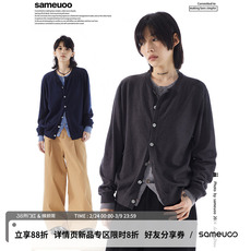sameuoo散养文化假两件内搭灰色毛衣开衫女春秋无性别针织衫外套