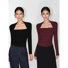 pusumede 松弛vibe 半高领打底针织衫女气质修身收褶长袖T恤上衣