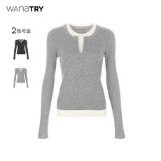 NEVA HUV 秋日狂想 小翻领坑条针织衫女v领修身气质收腰长袖上衣