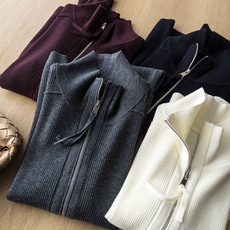 MULVAN【现货7折】 全色自留 双拉链连帽针织衫女韩系外套上衣