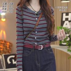 条纹薄款针织衫女2026秋季新款设计感扣子休闲百搭显瘦圆领开衫