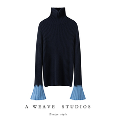 美~精致璀璨时刻!喇叭袖高领羊绒衫女纯羊绒毛衣针织打底衫秋冬