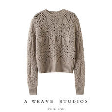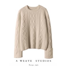 时髦小仙女!加厚圆领羊绒衫女绞花翻边袖设计纯羊绒毛衣针织衫冬