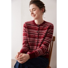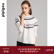 皮皮狗秋冬新款圆领费尔岛提花纯羊绒衫女复古针织套头毛衣