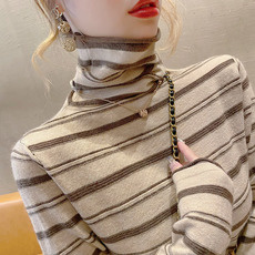 春秋条纹堆堆领针织衫女2025年新款早秋宽松高领毛衣内搭上衣外穿