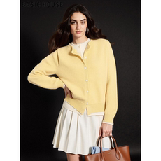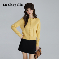 拉夏贝尔慵懒松弛感圆领针织开衫外套女秋冬季内搭高级感黄色上衣