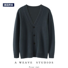 EEWEN LA MODE一件黑色毛衣 羊毛粗针织开衫V领慵懒毛衣外套
