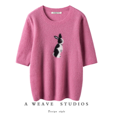 极简与舒适!多色云朵白厂丝羊绒 设计感兔子提花针织衫