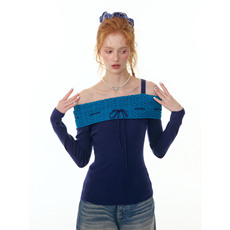 ziziFei秋冬季美式慵懒风设计感斜肩一字领绑带修身上衣针织衫女