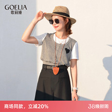 歌莉娅针织短袖女2025新款夏季流行穿搭假两件上衣T恤衫1E7J5H400
