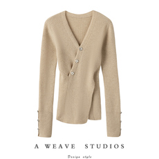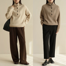 意大利设计师!舒适百搭纽扣坑条羊绒衫女纯羊绒毛衣针织打底衫
