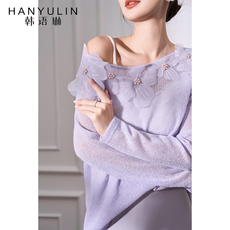 韩语琳紫色长袖针织衫女2026新款春春套头设计感短款显瘦气质上衣