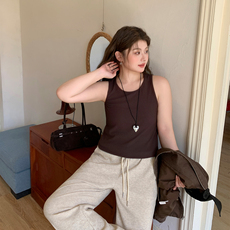 YUZI 鱼子针织背心特大码女装胖mm春季高弹显瘦百搭休闲运动上衣