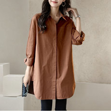 加大码女装翻领长袖衬衫胖妹妹韩版秋季款通勤风显瘦V领纽扣马甲