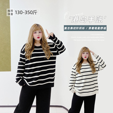 300斤胖mm大码秋冬黑色圆领长袖针织衫女宽松蝙蝠袖不规则上衣潮