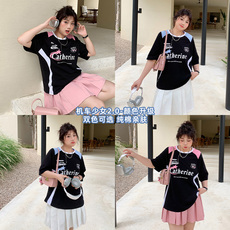大码女装圆领字母皇冠图案短袖T恤裙胖妹妹中长款显瘦休闲连衣裙