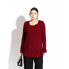 采多宝大码女装波浪边半高领宽松打底衫胖mm修身显瘦极简上衣