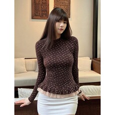 曾小咸大码女装 胖mm长袖v领蕾丝内搭可外穿上衣遮肉显瘦2025新款