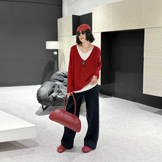宽松显瘦【80-200斤】大码胖妹妹法式一字领针织上衣女秋冬打底衫