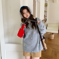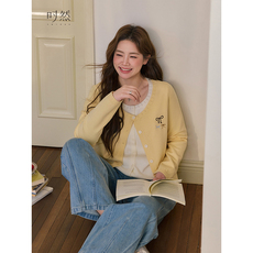 铅笔小鑫大码女装简约刺绣小熊翻领单排扣修身显瘦针织上衣