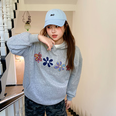 胖妹妹纽扣袖口圆领上衣大码女装韩版春秋款纯色简约百搭休闲卫衣