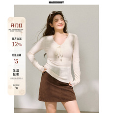 大码v领上衣美拉德咖啡色打底衫宽松女装遮肚子针织衫胖mm春装T恤