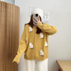 宛宛大码女装秋冬季卡通提花宽松慵懒针织开衫毛衣胖mm显瘦上衣潮