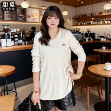 胖妹妹2025初秋新款休闲百搭简约T恤衫加肥大码女装字母长袖上衣