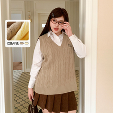 大码女装毛毛拼接花朵AB版国风马甲胖妹妹秋冬款高领长袖暗花小衫