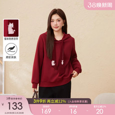 采多宝大码女装胖mm2025冬季新款猫咪绣花领带连帽卫衣EDZ6013N