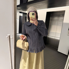 小珠桃子大码女装秋冬新款复古格子娃娃领显瘦荷叶边衬衫上衣内搭