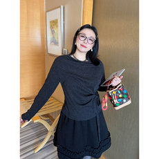 胡子叔大码女装春秋新款设计感时髦假两件长袖针织衫遮肚打底毛衣