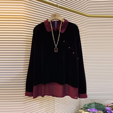 法式大码女装圆领盘扣拼接撞色长袖复古风时尚秋冬款显瘦百搭上衣