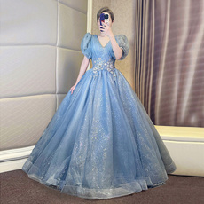 欢喜橙【蓝湛】夏季新款浅蓝色连衣裙高端宴会礼服裙伴娘服姐妹团