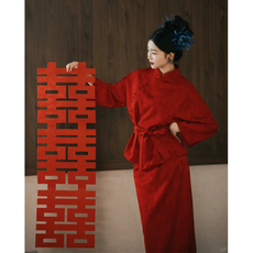 新中式改良旗袍新娘晨袍酒红色复古小个子敬酒服订婚礼服回门套装