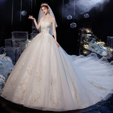 婚纱2025新款新娘 主婚纱韩式轻纱齐地出门纱抹胸简约大拖尾主纱