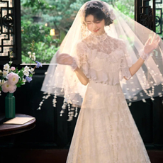 LaceMade 坚韧之翼 收藏款古董鱼骨轻婚纱法式复古重工礼服出门纱