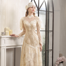 法式复古高级感蕾丝宫廷风白色订婚结婚婚纱礼服小众晨袍生日礼裙