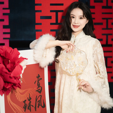 欢喜橙【小乔】新中式晨袍新娘秋冬连衣裙蕾丝加绒加厚宽松温柔风