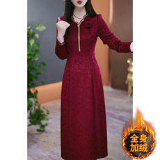 高端精致长袖加厚连衣裙女2025年秋冬新款妈妈假两件婚宴礼服裙子