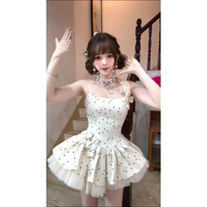 法式ins风御姐甜美公主裙精致高级吊带波点裙蓬蓬裙连衣裙礼服裙
