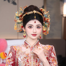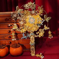 新娘中国风修和范黄金剪裁精致高端流苏范婚礼汉代龙凤礼服配件