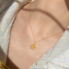 水滴锆石镶钻圆形人造珍珠项链法式高级感精致锁骨链轻奢礼服项饰