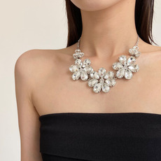 欧美夸张镶钻花朵项链2025新款颈链轻奢精致晚礼服高级感锁骨链潮