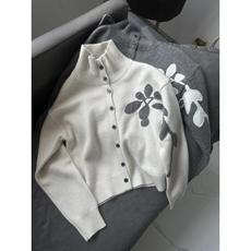 欧韩女装【特色设计感毛衣】纽扣半高立领软糯针织开衫立体花朵图