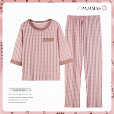 春秋妈妈纯棉套头春季女士睡衣七分袖两件套装大码休闲全棉家居服