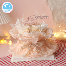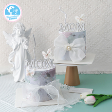 菜菜妈烘焙蛋糕装饰母亲节浅蓝色花围边刺绣蝴蝶MOM妈妈珍珠插件