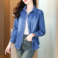 2026春装新款衬衫女全棉水洗牛仔上衣妈妈装休闲百搭开衫春秋装