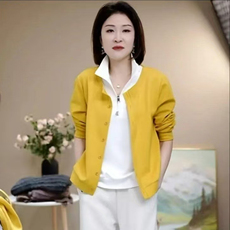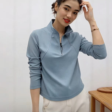 2026女士春季薄款卫衣妈妈简约洋气拉链立领套头T恤宽松遮肉减龄