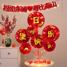 爸爸70妈妈60生日长辈老人过寿宴场景布置用品摆件纸扇花桌飘装饰